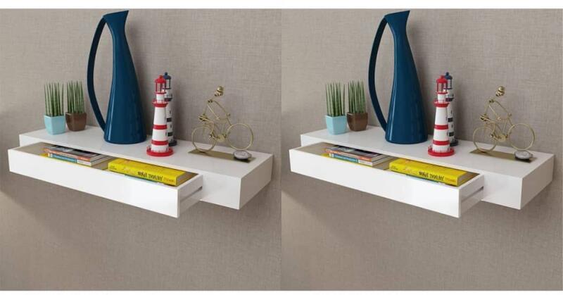2 db fehér lebegő fali polc fiókkal 80 cm