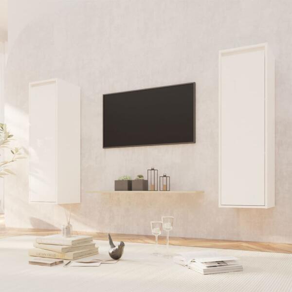 2 db Fehér Fenyőfa Falra Szerelhető Szekrény / TV Állvány - 30x30x100 cm ? Ezek a stílusos és praktikus faliszekrények tökéletes kiegészítői otthonodnak! Használhatod őket könyvek, dísztárgyak tárolására, vagy akár TV-szekrényként is funkcionálhatnak. A szett 2 darab szekrényt tartalmaz. Főbb jellemzők:Tömör fenyőfa: Erős, strapabíró és hosszú élettartamú anyagból készült. ? Multifunkcionális: Használható faliszekrényként vagy TV-szekrényként. ? Praktikus tárolás: Ideális könyvek, gyűjtemények, dísztárgyak és egyéb tárgyak tárolására. ? Könnyen tisztítható: Nedves ruhával egyszerűen tisztán tartható. ? Szín: Fehér Méretek: 30 x 30 x 100 cm (Szélesség x Mélység x Magasság) Maximális terhelhetőség (összesen): 60 kg Összeszerelést igényel: Igen Fontos biztonsági figyelmeztetés: A bútor felborulásának elkerülése érdekében a mellékelt tartóelemekkel rögzíteni kell a falhoz! A csomag nem tartalmazza a falhoz való rögzítéshez szükséges csavarokat és tipliket. Kérjük, használjon a fal típusának megfelelő rögzítőelemeket. Ha bizonytalan, kérje szakember segítségét. ⚠️ A csomag tartalma: 2 db faliszekrény