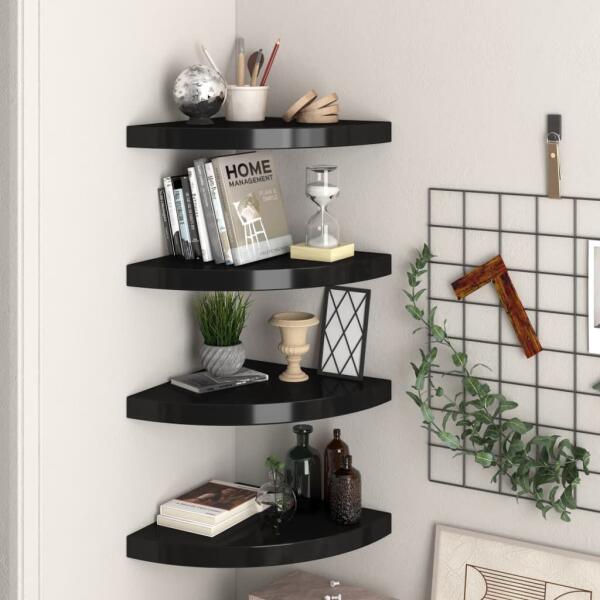 4 db fekete mdf lebegő sarokpolc 35 x 35 x 3, 8 cm
