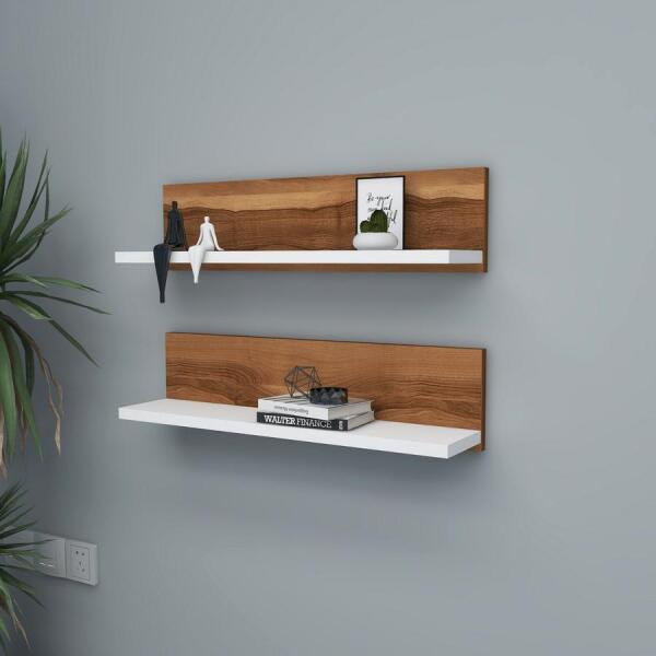 Változtassa meg falait a lenyűgöző skandináv ihletésű fali polcunkkal! Fokozza lakótérének szépségét elegáns és funkcionális fali polcunkkal. 100% melaminbevonatú forgácslapból készült, így garantálja a tartósságot és a hosszú távú használatot. A diófa és fehér színek kombinációjával ellátott, elegáns dizájn bármely helyiséget kifinomulttá varázsol. Elkészítsen egy stílusos és szervezett bemutatót A 60 cm szélességű, 15 cm magas és 13 cm mélységű (2 darabot tartalmaz) fali polc bőséges helyet biztosít kedvenc dekorációs tárgyai, könyvei vagy növényei bemutatására. Minimalista kialakítása zökkenőmentesen illeszkedik bármilyen belsőépítészeti stílushoz, így sokoldalú kiegészítője lesz otthonának. Egyszerű telepítés az Ön kényelme érdekében Fali polcunk könnyen rögzíthető a falhoz, így biztosítva a stabilitást és a biztonságot. A telepítési folyamat problémamentes, így Ön pillanatok alatt élvezheti új polcát. Mondjon búcsút a rendetlenségnek, és üdvözölje a jól szervezett és vizuálisan vonzó teret. Technikai részletek: