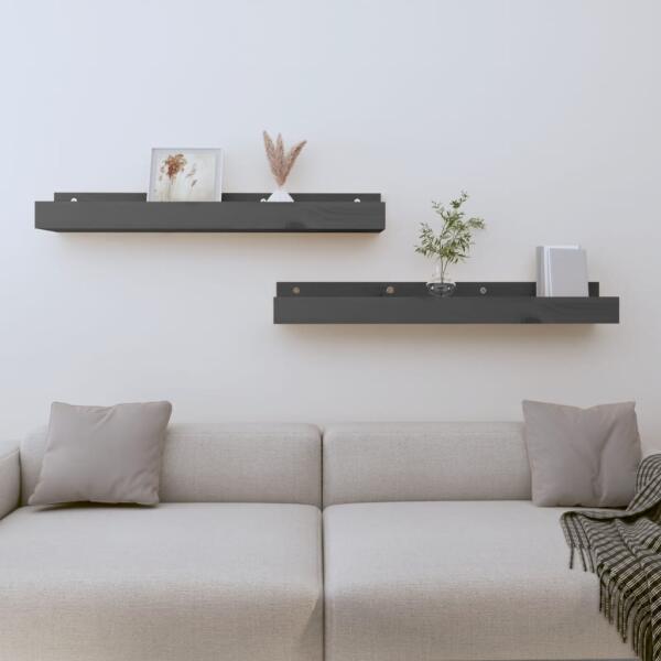 Bútor-market 2 db szürke tömör fenyőfa fali polc 80 x 12 x 9 cm