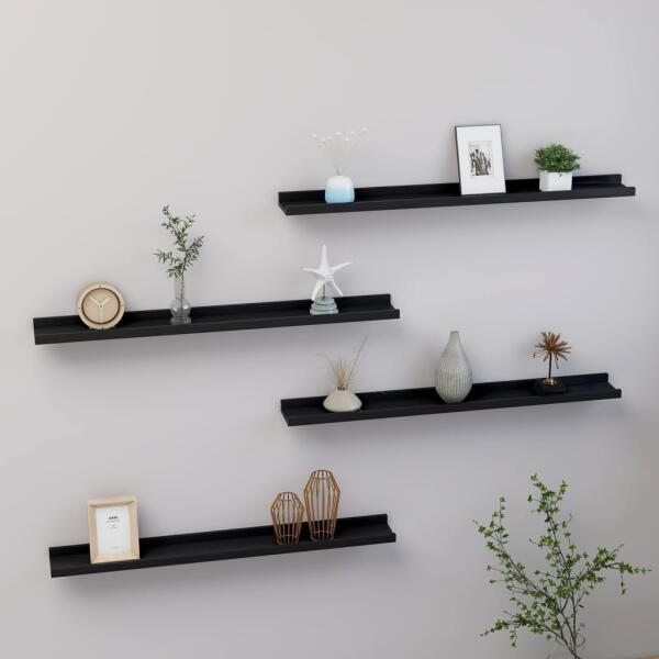 Bútor-market 4 db fekete fali polc 80 x 9 x 3 cm