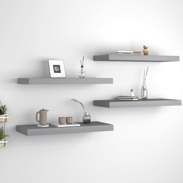 Bútor-market 4 db szürke mdf fali polc 60 x 23, 5 x 3, 8 cm
