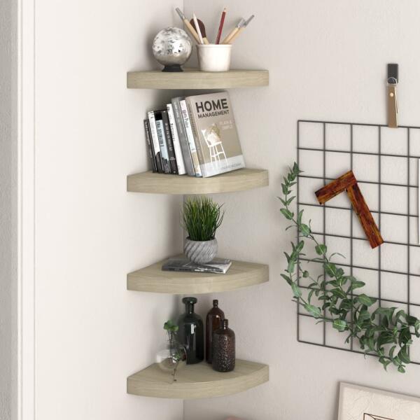 Bútor-market 4 db tölgyszínű mdf lebegő sarokpolc 25 x 25 x 3, 8 cm