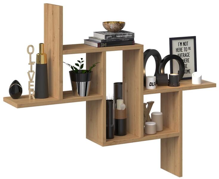 FALI POLCMODELL: FIESTASZÍN: ARTISAN TÖLGYA fali polc remek kiegészítője bármely bútorszettnek. Minden helyiségbe illik!A nappaliban, ifjúsági szobában vagy irodában több hasznos helyet biztosít a legszükségesebb dolgok számára, vagy dekoratív elemként szolgál. Sok helyiségben kis könyvtárrá válhat a legszükségesebb könyvek és dokumentumok számára. A fali szekrények remekül mutatnak, ha alattuk komód vagy TV-szekrény áll, együtt egységes egészet alkotnak! ANYAG: Test - laminált forgácslap. Élek – ABS műanyaggal zárva  MÉRETEK: Mélység: 15 cmSzélesség: 90 cmMagasság: 73,5 cm Használat: A bútor felületét puha ruhával tisztítsa. Kerülje az erős vegyszerek használatát.  A csomag tartalma: Szerelési útmutató minden szükséges szerelési kiegészítővel.    A bútor gyárilag csomagolt, önálló összeszereléshez.   Információ:Minden erőfeszítést megteszünk annak érdekében, hogy a bútor színei a fotókon a lehető legpontosabban legyenek reprodukálva. Ugyanakkor szem előtt kell tartani, hogy ezek érzékelése eltérhet az egyéni monitor vagy képernyő beállításaitól függően (mint például fényerő, kontraszt, színhőmérséklet vagy megjelenítési technológia). A termék valós árnyalata a fényviszonyoktól függően is eltérhet. Az esetleges színeltérések nem minősülnek a termék hibájának.