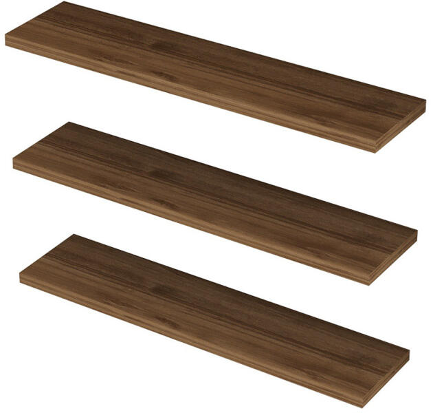 A Boss Walnut polc 3 darabos szett praktikus kiegészítője minden belső térnek. A diófa dekorációjának köszönhetően természetes hatást kelt és könnyen kombinálható. A polcok elegendő helyet biztosítanak könyvek, dekorációk vagy apró tárgyak tárolásához . 18 mm vastag, melaminnal bevont, strapabíró forgácslapból készültek, ami garantálja a szilárdságukat. A falra való felszerelés egyszerű, így pillanatok alatt funkcionális és stílusos tárolóhelyet kap. Paraméterek:
