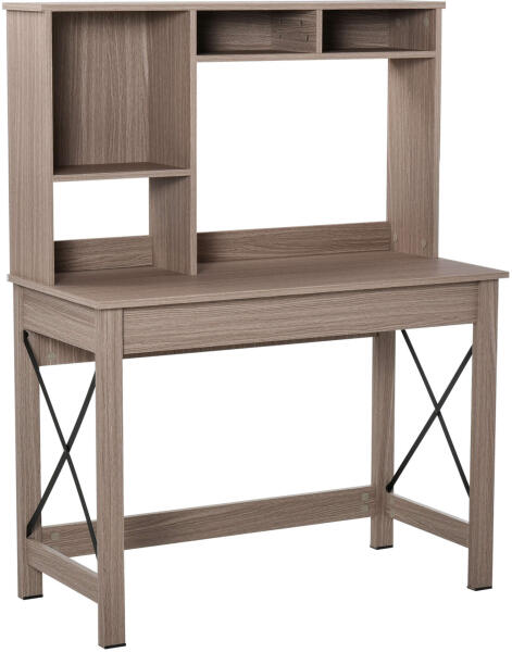 HOMCOM Íróasztal 4 Polccal: Tökéletes Otthoni Munkához és Tanuláshoz ? Ez a stílusos és praktikus HOMCOM íróasztal ideális választás otthoni irodába, gyerekszobába vagy tanulószobába. A 4 polc elegendő helyet biztosít könyveknek, irodai kellékeknek és egyéb tárgyaknak, miközben a tágas asztallap kényelmes munkaterületet kínál. Főbb jellemzők:Többcélú: Ideális otthoni munkához, tanulmányokhoz és hobbi tevékenységekhez. 4 polc: Bőséges tárolóhely könyveknek, dokumentumoknak és egyéb tárgyaknak. Tömör fa szerkezet: Strapabíró és tartós kivitel. Modern design: Stílusos megjelenés, amely bármilyen enteriőrbe illeszkedik. Könnyen tisztítható: Vízálló felület, nedves ruhával könnyen áttörölhető. Méretek:Méret Méret (cm)Szélesség 105Mélység 50Magasság 137.5Asztallap magassága 76Maximális terhelhetőség: Asztallap: 20 kg Polcok: 5 kg/polc Anyag: Melamin bevonatú forgácslap, acélváz Szín: Barna fa Rendezd be otthonodat stílusosan és praktikusan ezzel a sokoldalú íróasztallal!