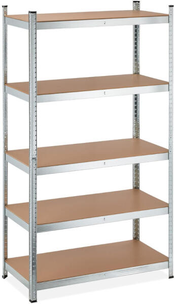 180 x 100 x 50 cm méretű horganyzott acélvázból álló tároló polc, 5 polccal. Csavarozás nélkül, egymásba illeszthető elemekből összeállítható, ahol a polcokat tetszőleges magasságban helyezhetjük el. Ideális tároló polc garázsokban, műhelyekben, kamrákban. Az állvány teherbírása polconként 175 kg egyenletes súlyelosztás esetén. Egyszerű és gyors összeszerelés szerszámok és csavarok nélkül, az egymásba illeszthető rendszernek köszönhetően. Csomag tartalma