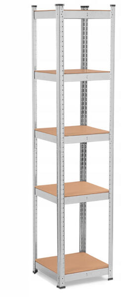 180 x 40 x 40 cm méretű horganyzott acélvázból álló tároló polc, 5 polccal. Csavarozás nélkül, egymásba illeszthető elemekből összeállítható, ahol a polcokat tetszőleges magasságban helyezhetjük el. Ideális tároló polc garázsokban, műhelyekben, kamrákban. Az állvány teherbírása polconként 100 kg egyenletes súlyelosztás esetén. Egyszerű és gyors összeszerelés szerszámok és csavarok nélkül, az egymásba illeszthető rendszernek köszönhetően. Csomag tartalma