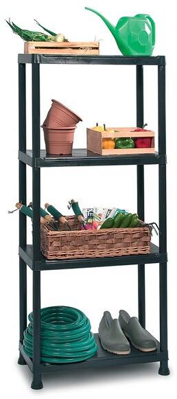Tegyen rendet a szerszámai és kellékei között a garázsban, pincében vagy bármilyen helységben, ahol nagyobb áttekintést szeretne a dolgairól. A Keter Plus Shelf 60/4 karbantartásmentes polcállvány tartós és ellenálló anyagból készült és mindegyik polca 20 kg teherbírással rendelkezik , aminek köszönhetően különböző helyekre felel meg a háztartásában és elsősorban műhelyben. A polcokon rengeteg helyet talál a szerszámainak, kerti kellékeinek vagy élelmiszer tartaléknak , például lisztnek vagy cukornak. A magas lábak megkönnyítik a takarítást az állvány alatt. Fő előnyök