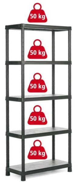 KIS PLUS 80/5 Műanyag polc, 80 x 40 x 187 cm, 5 polc, fekete 241075 (241075)
