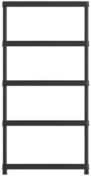 Karbantartásmentes polcállvány sokoldalú használatra garázsban, műhelyben és háztartásban, 5 polc, 1 polc 50 kg teherbírással, magas lábak a padlók egyszerű tisztításáért, magas ellenállás. Polccsatlakoztató rendszer. Fekete.