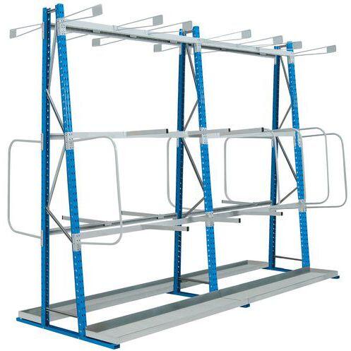 Függőleges polcállvány egyoldalú vagy kétoldalú kivitelben, az alapelem egy további polcállvánnyal bővíthető. A hosszú profilok és rúdanyagok tárolására. Felületkezelés porszórásos lakkal RAL 5015 és RAL 7035 színben.