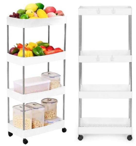 A gurulós polc egy nagyszerű bútordarab minden otthonba, amelyet hatékonyan használhat. A négy  polccal rendelkező, masszív műanyag szerkezetű polcot használhatja a gyerekszobában polcként, vagy különböző kozmetikai, dekorációs tárgyak tárolására. Négy polccal felszerelt műanyag polcrendszer, amely elegendő helyet biztosít a különböző fürdőszobai tárgyak , például kozmetikumok, törölközők és piperecikkek tárolására. A polc tartós műanyagból készült, masszív kivitelű, négy fiókkal ellátott, kényelmes fogantyúkkal és kiesés elleni zárral ellátott fiókkal. A kerekekkel ellátott lábak megkönnyítik a polc mozgatását, még akkor is, ha teljesen meg van rakva. Termékleírás
