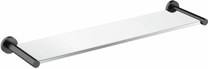 MODERN PROJEKT | üvegpolc Szín: antracit (AT) A MODERN PROJECT kiegészítő kollekciót a letisztult forma és a minimalista design jellemzi. A tökéletesen kifinomult, kör alakon alapuló forma időtlen, modern jelleget kölcsönöz a kollekciónak. Az antracit egy kortárs kivitel, mély fémes árnyalattal és szatén csiszolt felülettel. A bevonatot fejlett PVD-technológiával állították elő. Műszaki adatok: - sárgarézből és edzett üvegből készült - szélesség: 55 cm, magasság: 4,2 cm, távolság a faltól: 14,4 cm