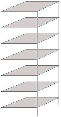 Kétoldalú irodai polcállványok iratrendezőkre, alkalmasak valamennyi irodába vagy archívumba. A 25 mm-es raszterben állítható polcok középső választó léccel rendelkeznek, mely lehetővé teszi a mappákhoz való hozzáférést mindkét oldalról. Az alapkivitelű és a hozzáépíthető polcállványok kombinációjával a beltér igényei szerinti összeállítások alakíthatók ki. Egyszerű összeszerelés kötőelemek és szerszámok nélkül is. Felületkezelés porszórásos lakkal világos szürke RAL 7035 színben vagy horganyzással. Az alap polcállvány teljes szélessége +6 mm.