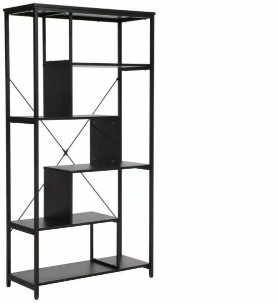 Modern, ipari stílusú polcos állvány fekete laminált polcokkal és matt fekete fémvázas szerkezettel. Ideális megoldás könyvek, dekorációk és egyéb tárgyak tárolására az otthonában vagy irodájában. Modern és sokoldalú tárolási megoldás otthonába vagy irodájába A Net A polcos állvány egy elegáns és praktikus bútordarab, amely tökéletesen ötvözi a modern dizájnt a funkcionalitással. A 163 cm magas, 85 cm széles és 35 cm mély állvány fekete laminált polcokkal és stabil fém vázzal rendelkezik. Az aszimmetrikus polcelrendezés egyedi megjelenést kölcsönöz a bútornak, míg a keresztmerevítők biztosítják a szerkezet stabilitását. Ez a sokoldalú polcrendszer ideális könyvek, dekorációs tárgyak vagy irodai kellékek tárolására. A matt fekete kivitel könnyedén illeszkedik bármilyen modern enteriőrbe. Előnyök Modern és elegáns megjelenés a matt fekete színkombinációval Stabil szerkezet a fém váznak és keresztmerevítőknek köszönhetően Változatos tárolási lehetőségek az aszimmetrikus polcelrendezésnek köszönhetőenFőbb tulajdonságokTeherbírás: Polconként 40 kg terhelhetőség a maximális stabilitásértAnyagminőség: Tartós laminált polcok és porfestett fém vázMéretek: 163 cm magas, 85 cm széles, 35 cm mély - ideális méret bármely helyiségbeTechnikai adatok Méretek (Sz x Mé x Ma)85 x 35 x 163 cmPolcok anyagaLaminált lapVáz anyagaFémMaximális terhelhetőség40 kgNettó súly23,5 kgRendezze be otthonát vagy irodáját ezzel a modern és praktikus polcos állvánnyal!