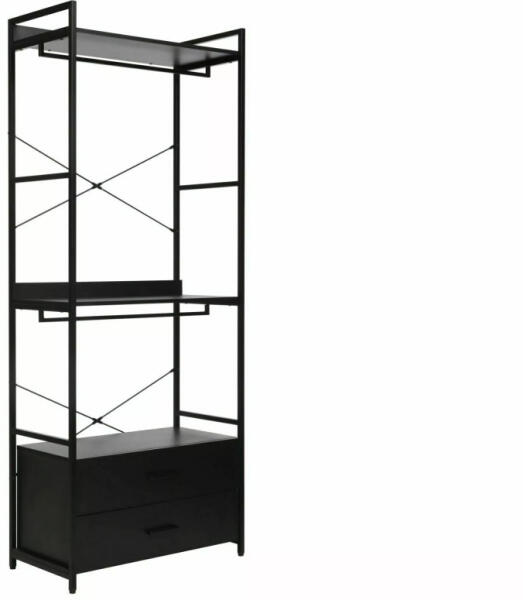 Modern, ipari stílusú polcos szekrény fekete matt fém vázzal és laminált polcokkal. Zárt tárolórésszel és praktikus polcrendszerrel ideális megoldás otthoni vagy irodai használatra. Modern tárolási megoldás maximális funkcionalitással A Rin C polcos szekrény egy elegáns és praktikus bútordarab, amely tökéletesen ötvözi a modern dizájnt a funkcionalitással. A 200 cm magas, 80 cm széles és 40 cm mély szekrény fekete matt fém vázszerkezettel és laminált polcokkal rendelkezik. A nyitott polcrendszer és az alsó zárt tárolórész ideális kombinációt kínál a különböző tárolási igényekhez. Ez a sokoldalú bútor tökéletes választás irodákba, nappalikba vagy bármely modern térbe, ahol stílusos tárolási megoldásra van szükség. A minimalistá dizájn és a praktikus kialakítás teszi különlegessé ezt a darabot. Előnyök Kombinált tárolási megoldás nyitott polcokkal és zárt fiókokkal Stabil, 30 kg teherbírású polcok Modern, ipari stílusú megjelenésFőbb tulajdonságokAnyag: Tartós fém váz és laminált polcok a hosszú élettartamértMéret: Optimális 200x80x40 cm-es méret a maximális tárolókapacitásértDizájn: Elegáns fekete matt kivitel, amely bármilyen térbe illeszkedikTechnikai adatok Méretek (Sz x Mé x Ma)40 x 80 x 200 cmAnyagLaminált lap, fém vázTeherbírás30 kgSúly34 kgSzínFekete mattSzerezze be most ezt a sokoldalú tárolási megoldást, és teremtsen rendet stílusosan!