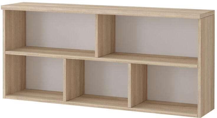 SMYK 09 ifjúsági fali polc sonoma színben. A SMYK ifjúsági bútorszett család tagja e praktikus falra szerelhető polc, mely divatosan letisztult színösszeállításban kapható. Az öt tagból álló kialakítással törekedhetünk a maximális helykihasználásra.