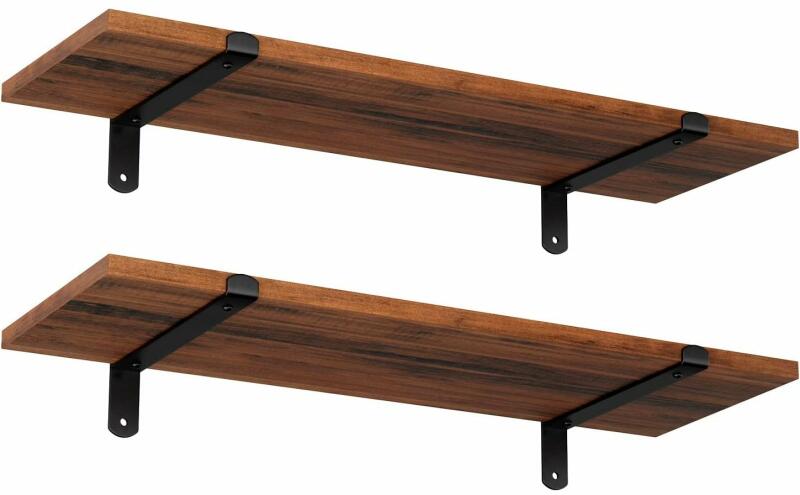 2 db fali polc készlet, 60 x 20 x 7 cm, úszó dekoratív polcok, vintage fa hatás, hálószobába / nappaliba / konyhába / előszobába, polconként 15 kg-ig, MDF (közepes sűrűségű farostlemez), barna / Fekete
