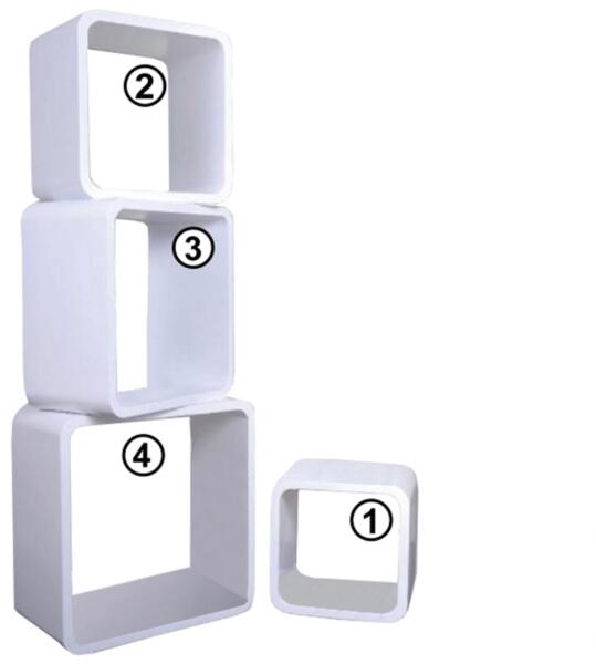 Hálószoba bútorok > Komódok és polcok > Polcok > Polc, fehér, DIDO Polc készlet - 4 db Anyag: MDF Változat: fehér Méretek (SzéxMaxMé): 1 - 26x26x20 cm, 2 - 31x31x20 cm, 3 - 36x36x20 cm, 4 - 41x41x20 cm