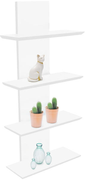 Anyag: laminált DTD Szín: fehér Méretek (SzxMéxMa): 40x16,5x92 cm MDF vastagsága: 1,5 cm Polcok teherbírása: 5 kg Súly: 4,3 kg Fali Felakasztható Nyitott tárhely Polcok Polc méretei (SzxMé): 40x15 cm Modern Javasoljuk a falhoz való rögzítést Szétszerelve szállítva