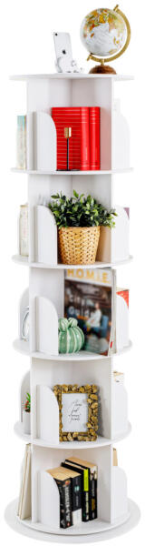 Szerkezet anyaga: MDF Szín: fehér Méretek (SzxMéxMa): 45,5x45,5x158 cm Könyvespolc Többfunkciós polcállvány 5 polcos Polc teherbírása: 5 kg Polcok közötti magasság: 30,5 cm 360°-os szögben forgó Az egyes szintek egyszerre, egyirányba forognak Egyszerű szerelés Összeszerelés "kirakós" módon Könyvekre, dokumentumokra Játékokra, különféle kreatív segédeszközökre Fényképekre, díszekre Egy pár kesztyű grátisz Fából készült mobiltelefon állvány grátisz Bontásban szállítva