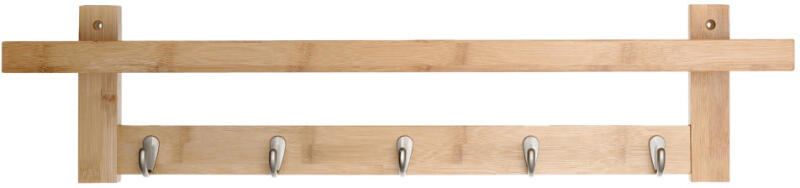 Anyag: lakkozott bambusz/acél Szín: bambusz Méretek (SzxMxMa): 78,5x8x12 cm Négy kampó Polc Teherbírás:Anyag: lakkozott bambusz/acél Szín: bambusz Méretek (SzxMxMa): 74x12x18 cm Négy kampó Polc Teherbírás: 10 kg Alkalmas fürdőszobákba és előszobákba 10 kg Alkalmas fürdőszobákba és előszobákba