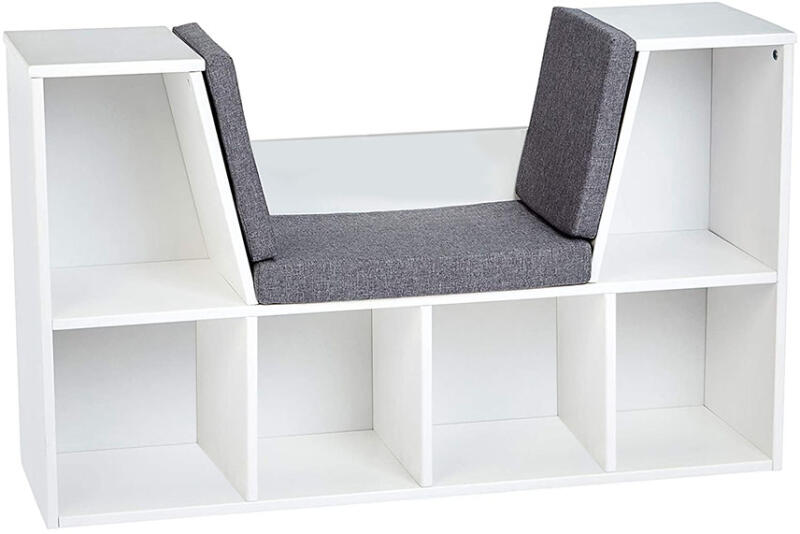 Tárolópolc ülőhellyel és párnával nem csak rendszerezésre! Különleges kialakításának köszönhetően kényelmes helyet biztosít akár egy könyv olvasásához vagy egy kis relaxációhoz. Nem csak funkcionalitásában lelheted örömöd, és rendben tarthatod cipőid, könyveid vagy egyéb tárgyaid. Dizájnos eleme lehet az előszobának, a gyerekszobának vagy irodádnak is. Szivacspárnáinak köszönhetően kényelmes ülőfelülettel rendelkezik. Termék teljes mérete: 102x63x29 cm Teljes hosszúság: 102cm Teljes magasság: 63 cm  Teljes mélység: 29 cm Teherbírás: max 50 kg Ülőfelület mérete: 29x42 cm  Hátsó támla magassága: 51 cm  Anyag: MDF, szövet, szivacs Csomag mérete: 113x19x36 cm Csomag súly: 19 kg