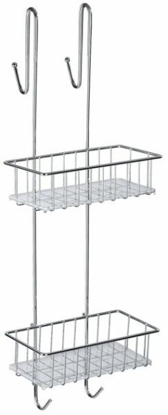 - magasság: 70 cm- szélesség: 24,5 cm- hossza: 20 cm- két szint a fürdőszobai kiegészítők számára- két kampó pl. zuhanyzótörülközők felakasztásához- a bordázott szerkezet lehetővé teszi a víz szabad lefolyását- zuhanyajtókra akasztható- anyaga: rozsdamentes acél- szín: ezüst