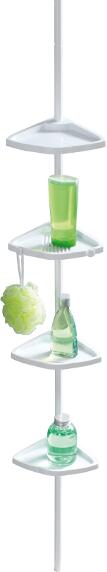Praktikus megoldás fúrás nélkül. A teleszkópos sarokpolcot rakhatjuk zuhanykabinba vagy akár kád fölé a sarokba.